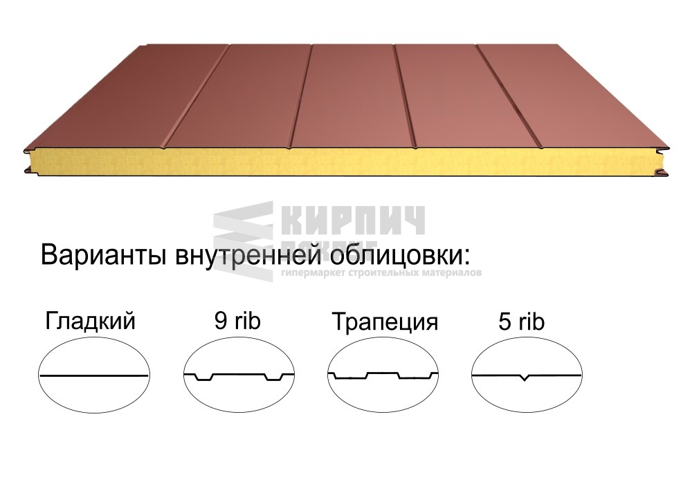 В интернет-магазине "Кирпич Вокруг" Вы можете купить Стеновая трёхслойная сэндвич-панель 5 rib 100мм 1000мм с видимым креплением минеральная вата Полиэстер Доборник в Орле, а наши специалисты готовы вам помочь с выбором по адресу: , или оказать консультацию по телефону: .